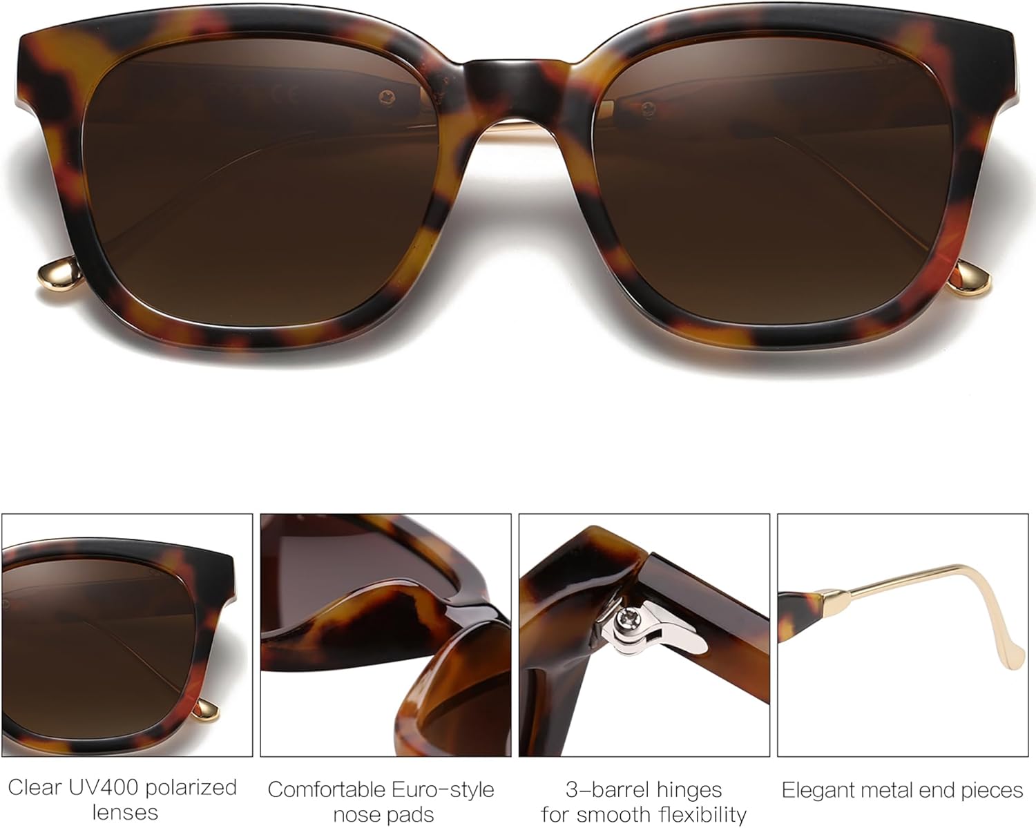 Featuring a timeless square frame, these sunglasses are perfect for any occasion, whether you’re lounging at the beach or running errands in the city. The polarized lenses help reduce glare, making them ideal for driving or outdoor activities.